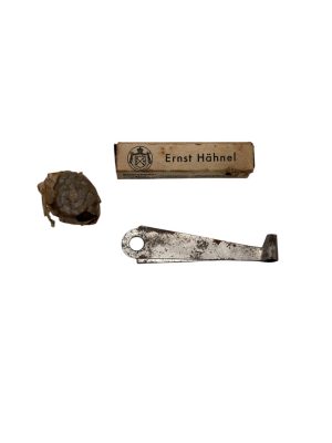 Harmonica Allemand M. Hohner Boîte en carton décoré noir à l’extérieur, intérieur rose, avec étiquette publicitaire “Hohner Harmonikas – Meisterspiel deutscher Qualitätsarbeit”. Les harmonicas Hohner étaient extrêmement répandus en Allemagne et exportés dans le monde entier. Ce modèle était vendu aux civils, mais on en retrouve beaucoup dans les effets personnels de soldats allemands pendant…