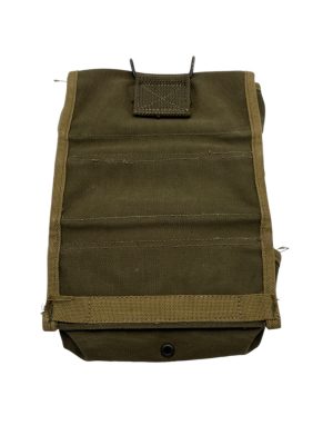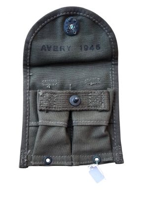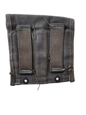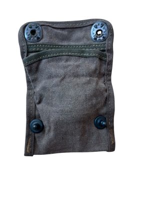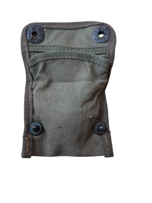 U.S. Grenade Pouch M marquée du fabricant Creslee Mfg. Co et de la date 1944 Couleur Olive Drab n°3 (OD3) Sangle coupé a l’arrière sur le terrain selon moi car beaucoup de soldat trouver cela gênant et préférée le fixer sur le ceinturon M36 Conçue pour contenir 6 grenades à main américaines modèle Mk II…