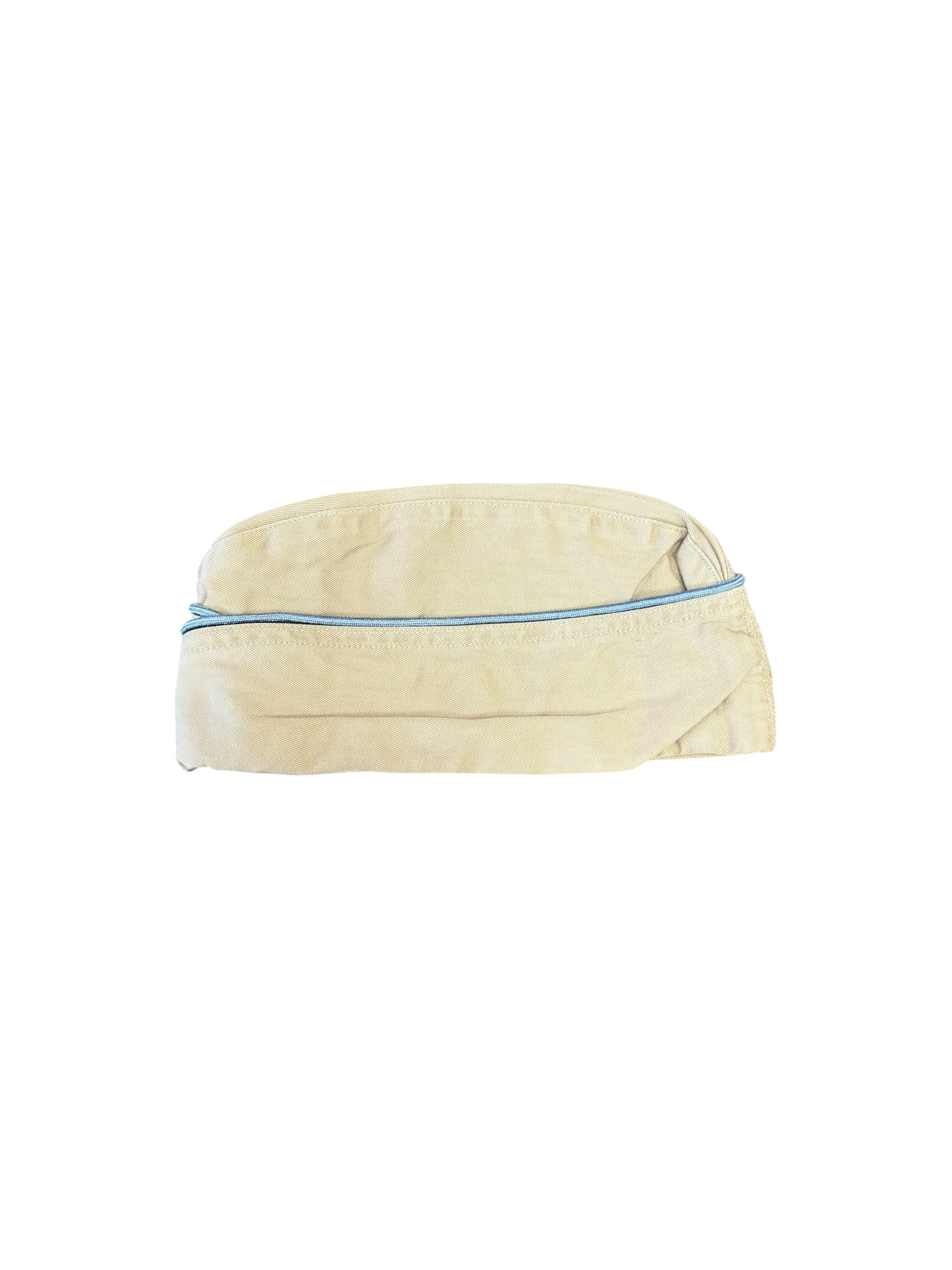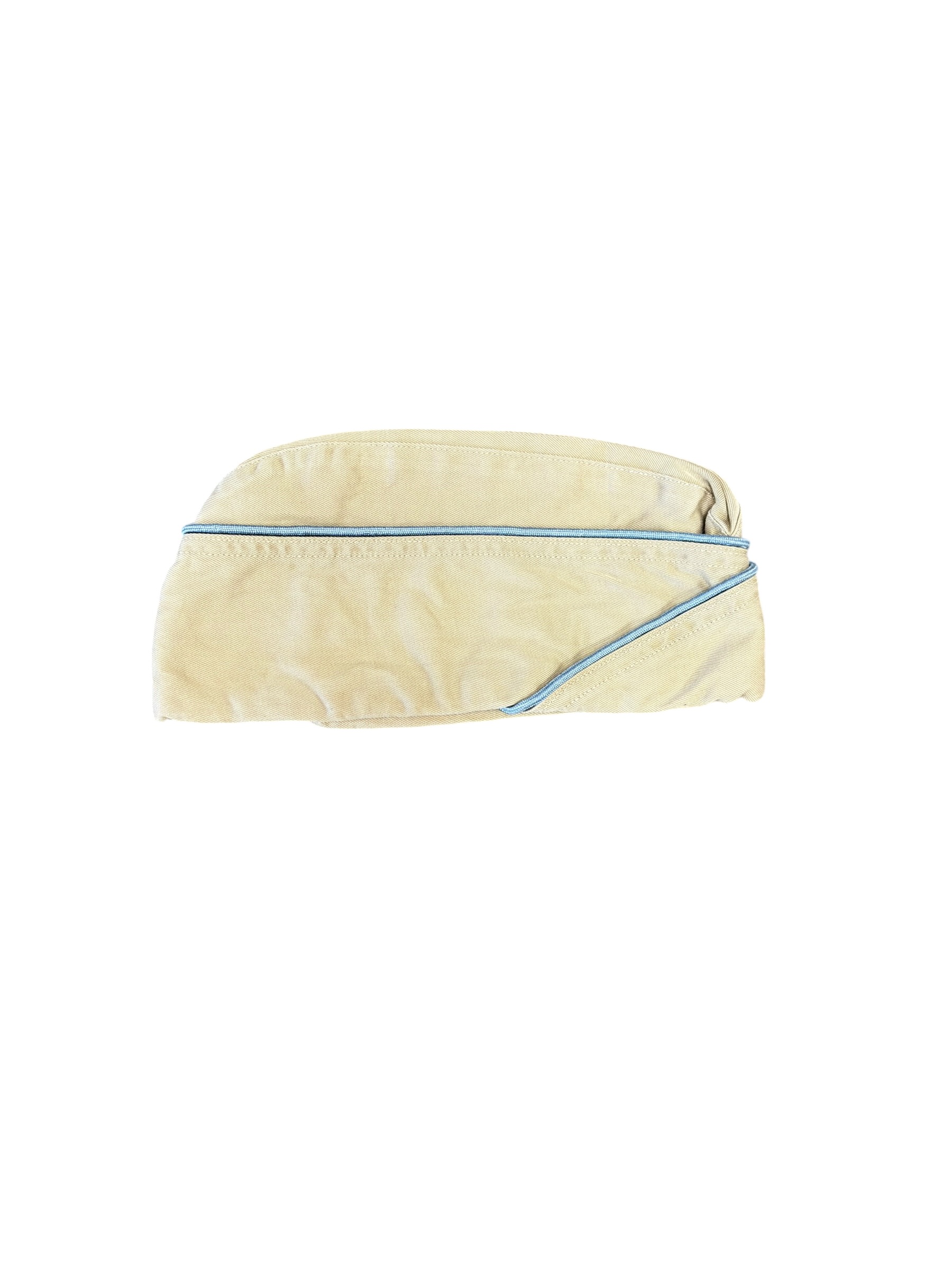 Le calot présente un bon état général, avec une patine cohérente avec une utilisation en service. Le liseré bleu correspond à l’infanterie. L’intérieur porte clairement le nom du soldat