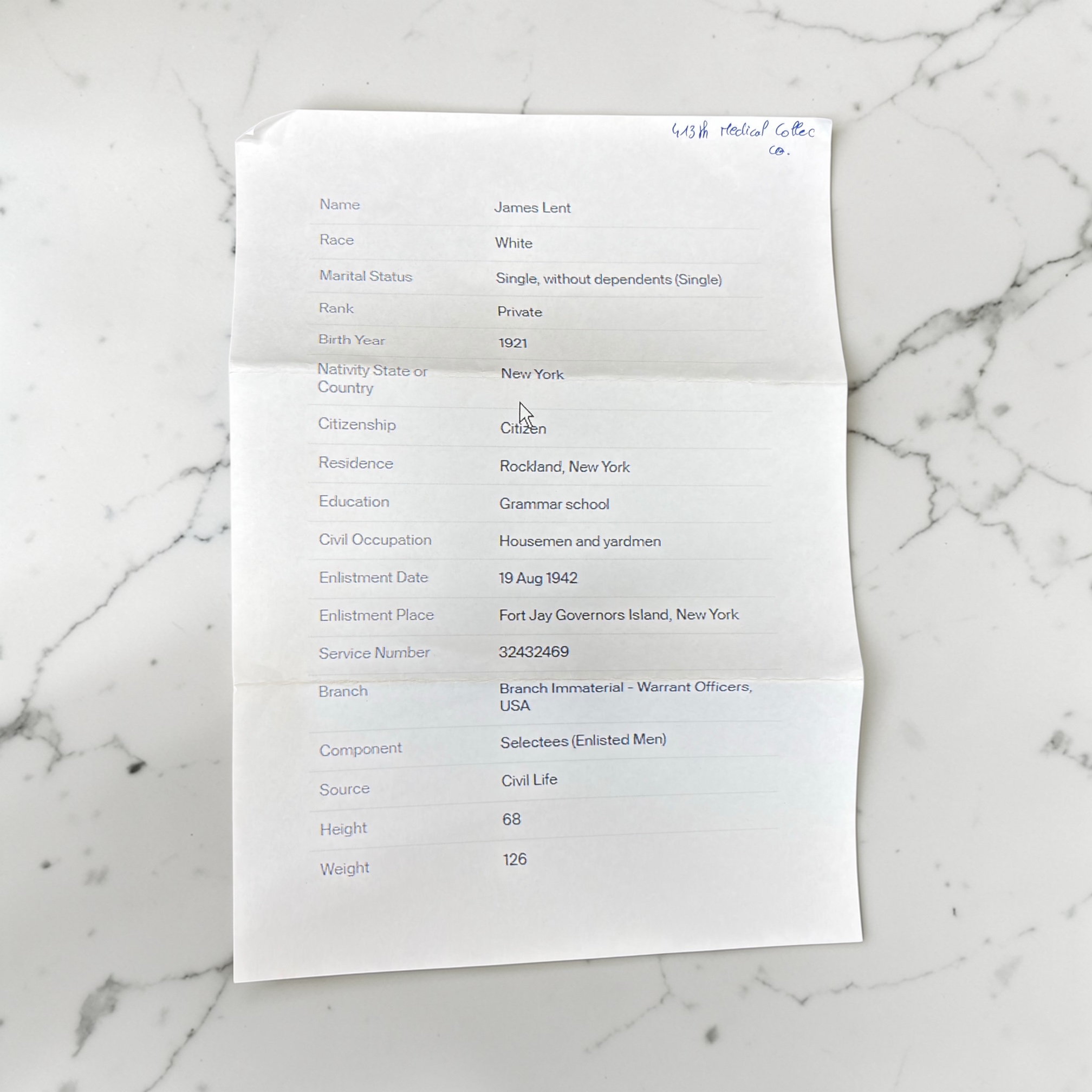 Il sert au sein du 362nd Infantry Regiment, rattaché à la 91st Infantry Division, une unité déployée sur plusieurs théâtres d’opérations durant la guerre.