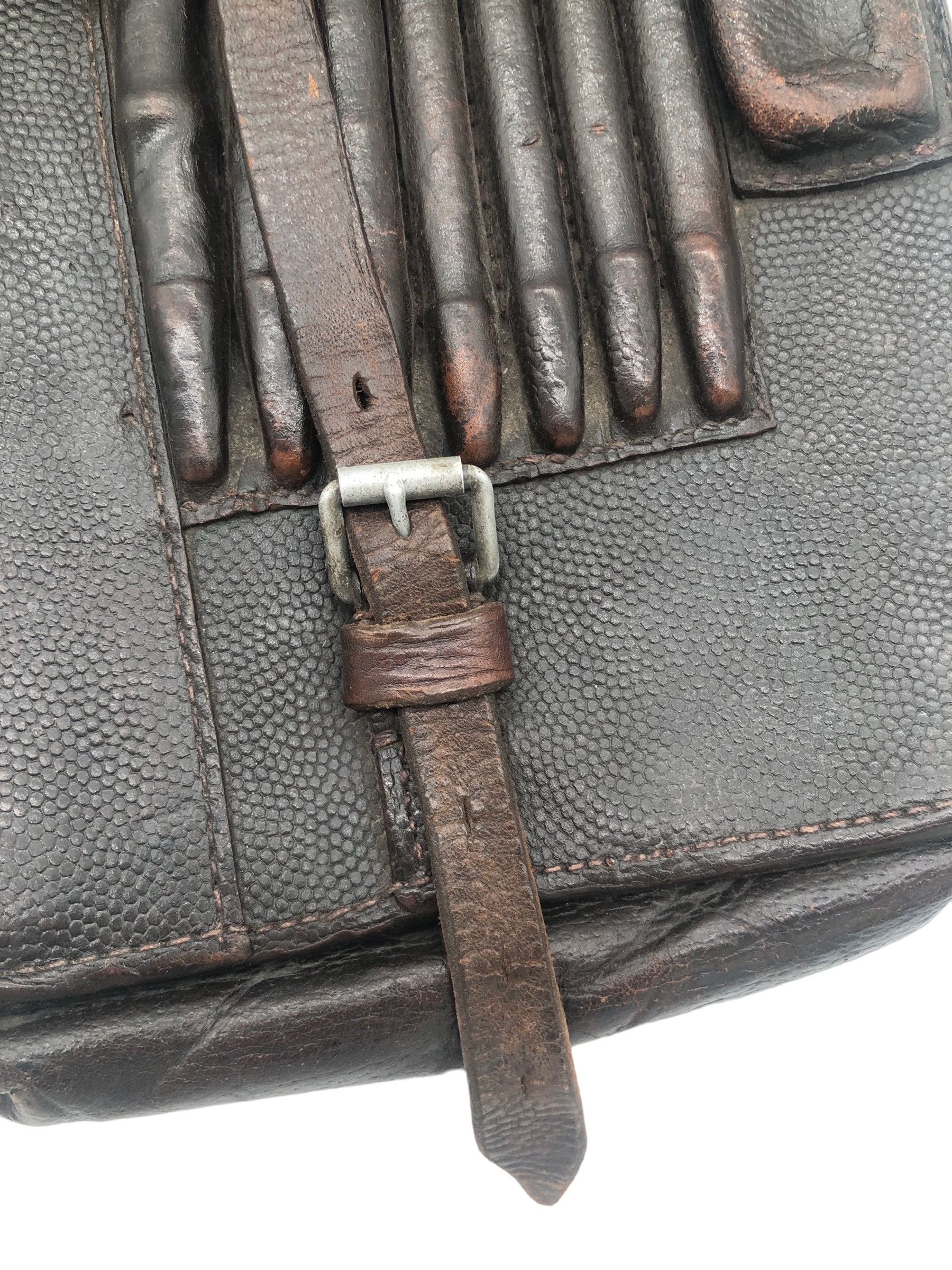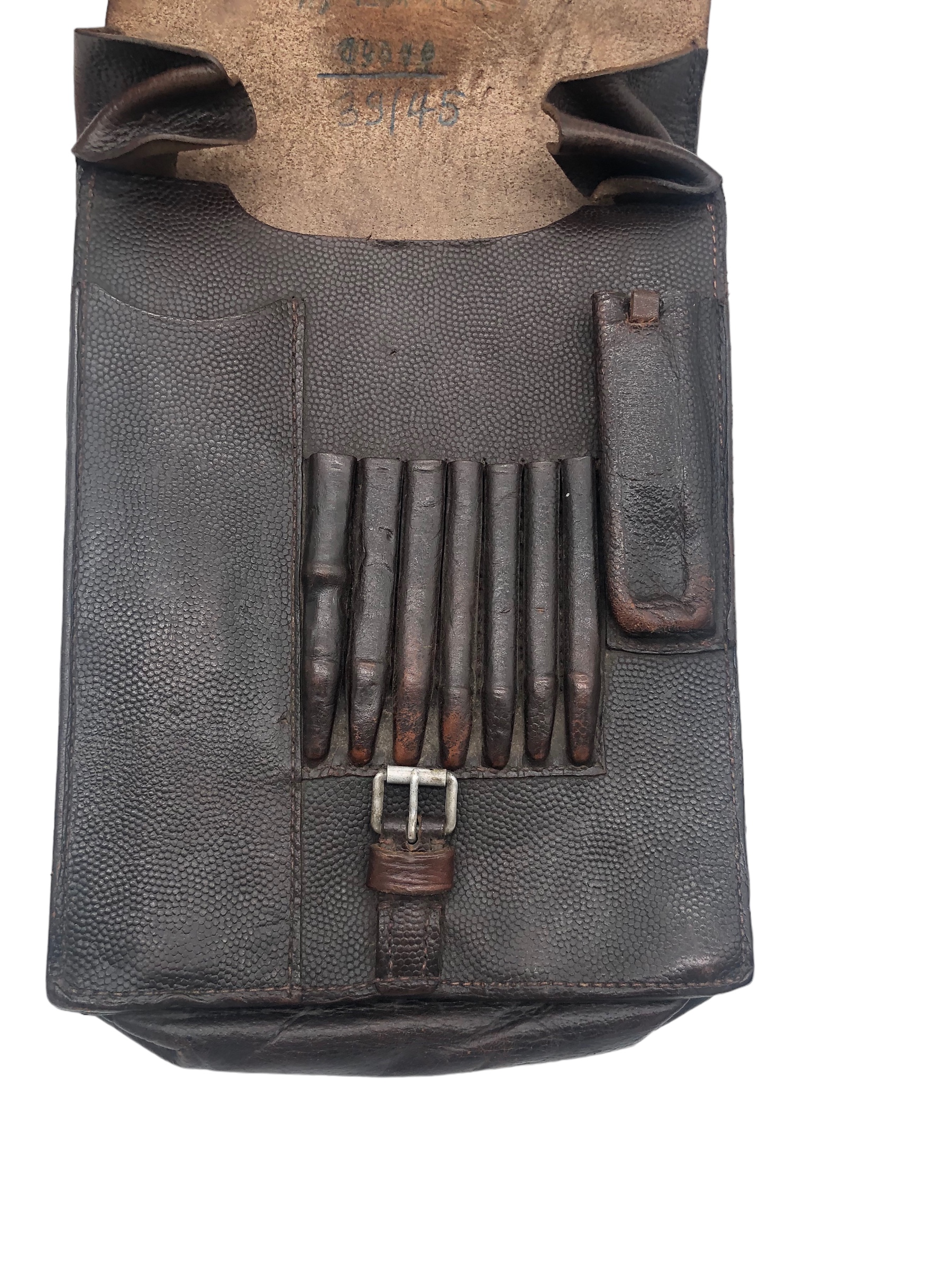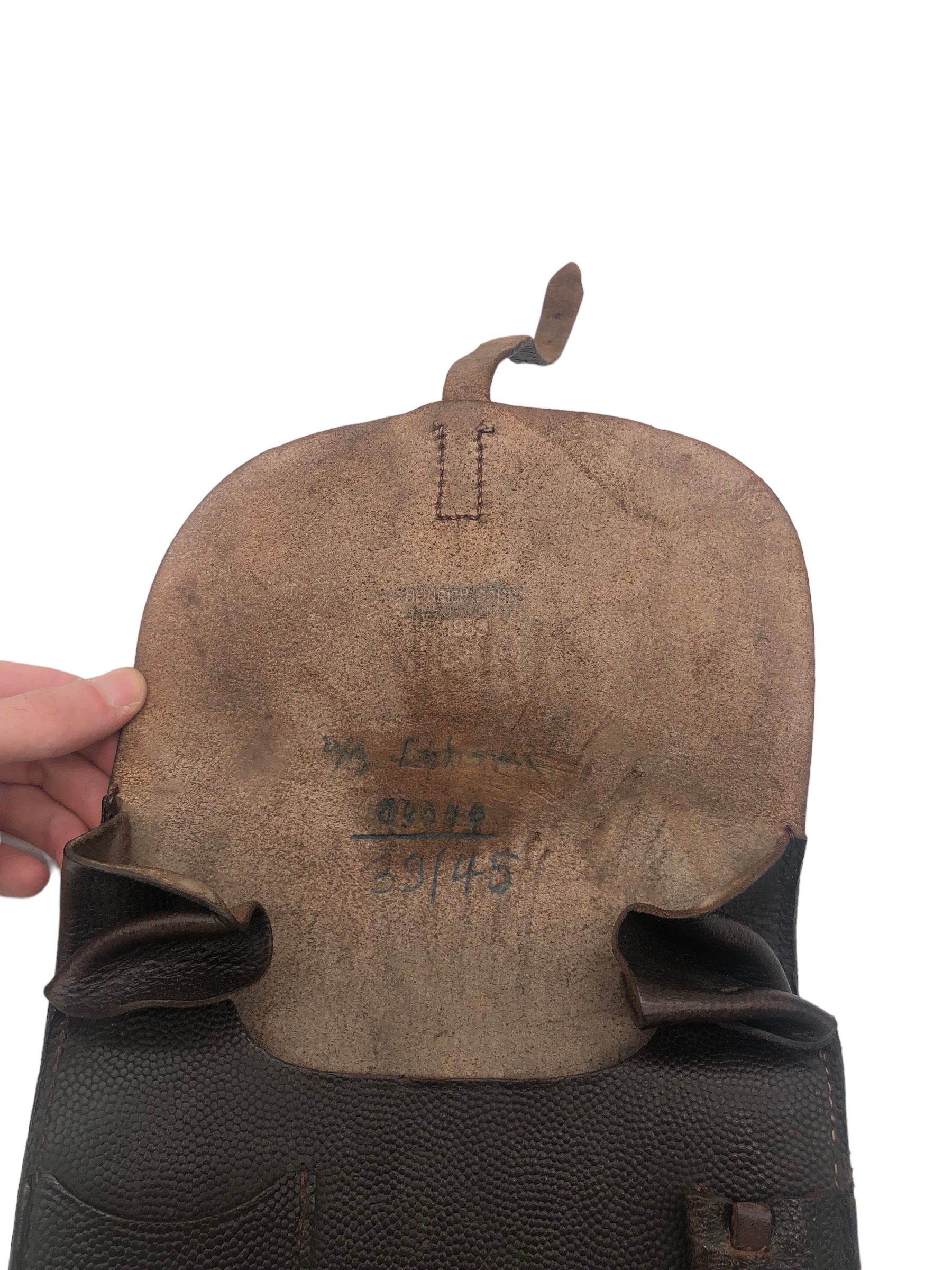 Superbe porte-carte allemand (Meldekartentasche) en cuir noir granuleux, daté 1939. Ce modèle était utilisé par les officiers et sous-officiers de la Wehrmacht pour transporter cartes, documents, crayons et outils de repérage sur le terrain.
