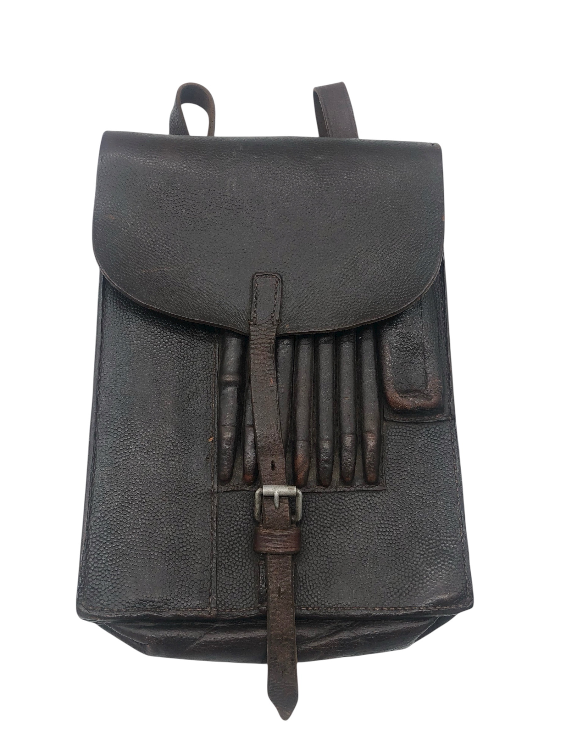 Fabriqué en cuir véritable épais, il présente une patine homogène et des coutures solides d’origine. L’intérieur conserve son aménagement typique avec compartiments pour crayons, règle, et documents.