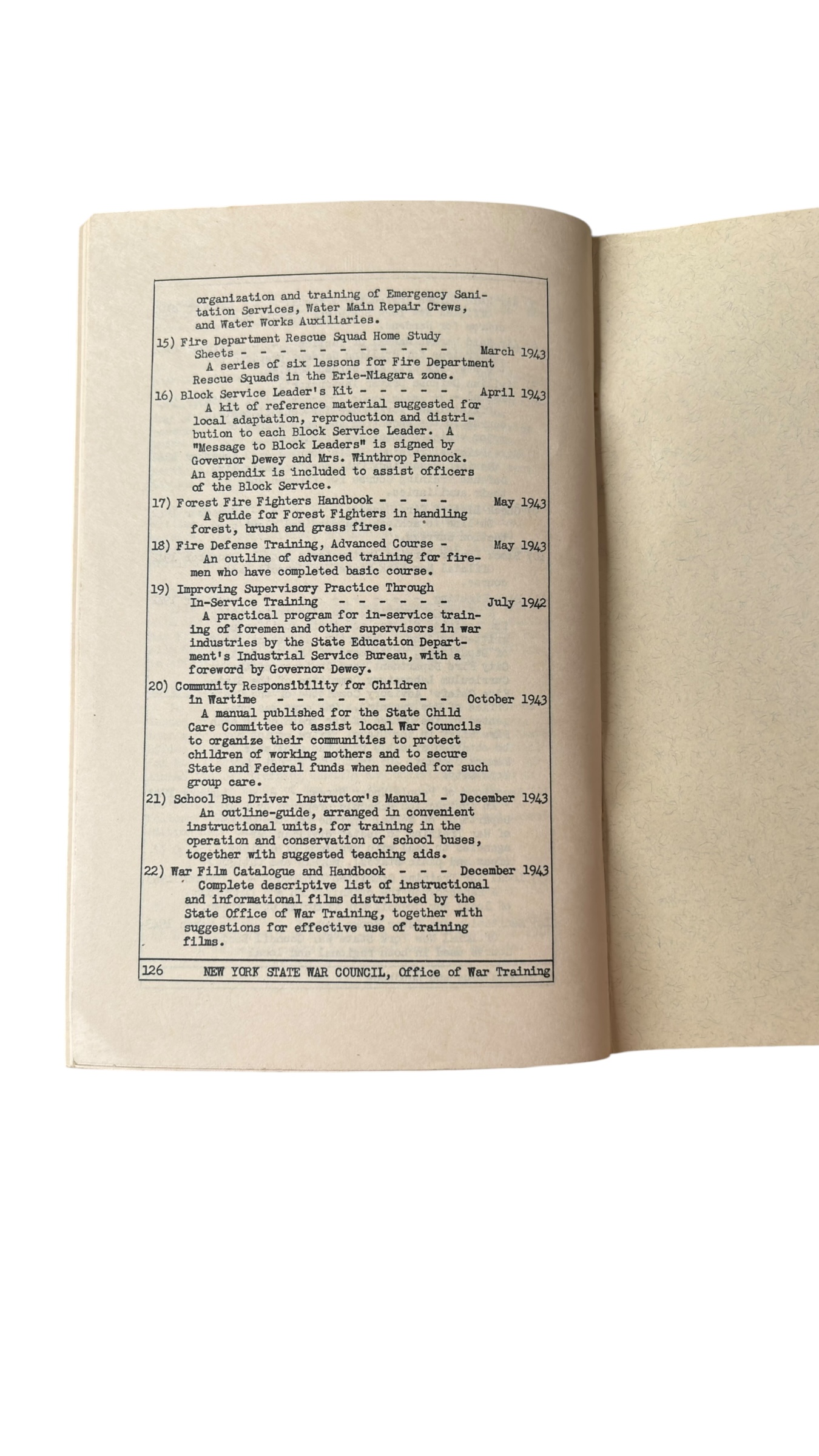 - Éditeur : New York State War Council, Office of War Training (Bureau de formation en temps de guerre de l’État de New York).