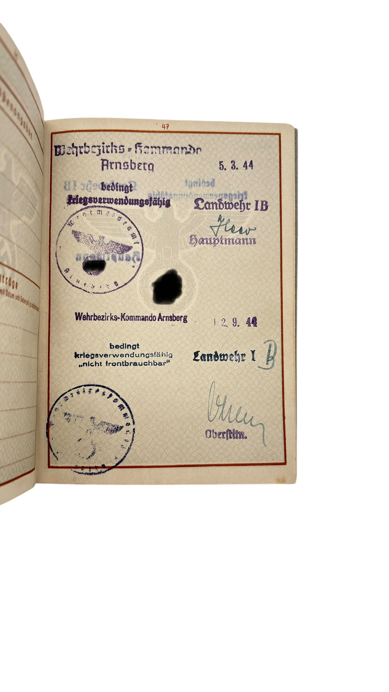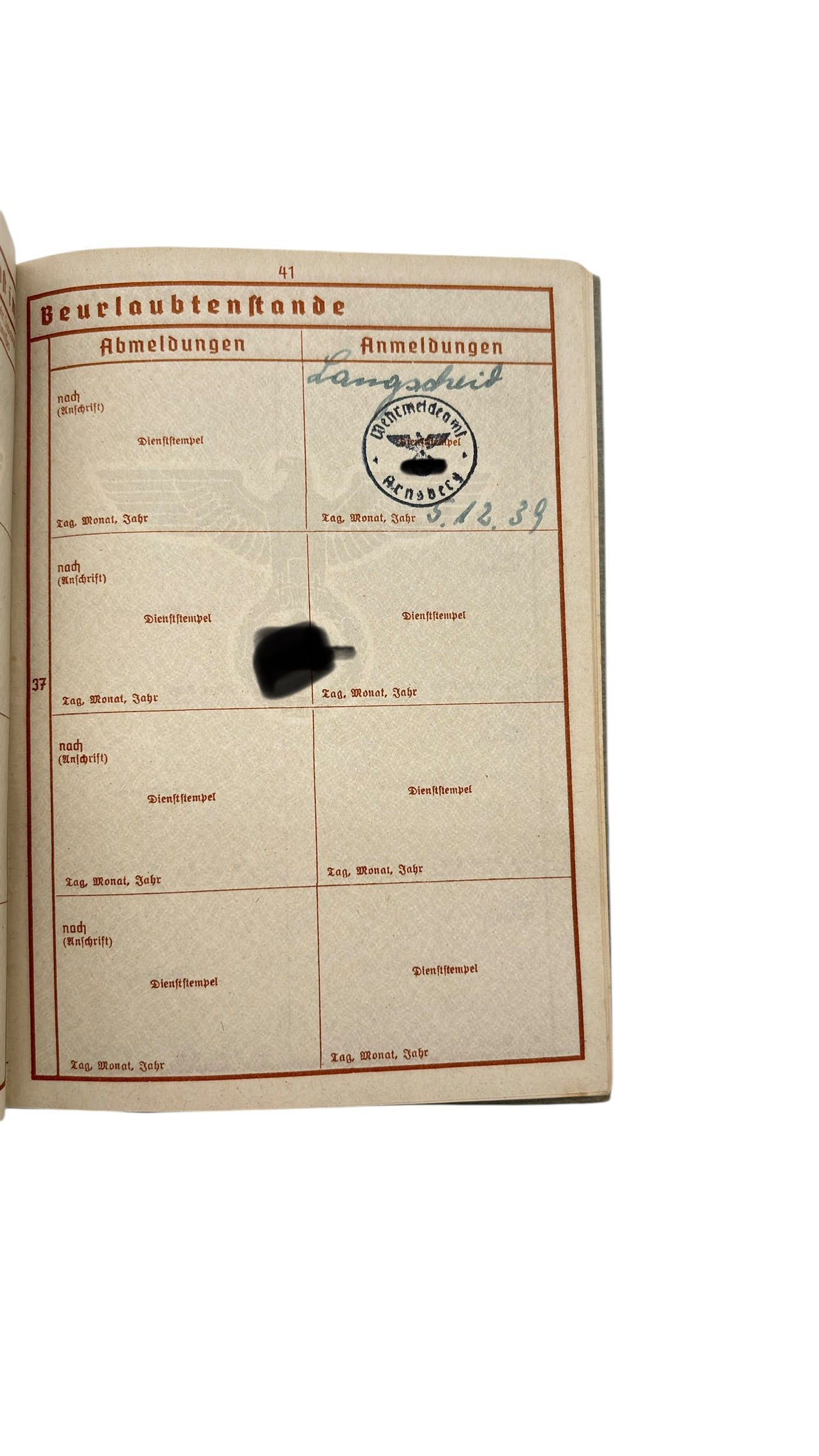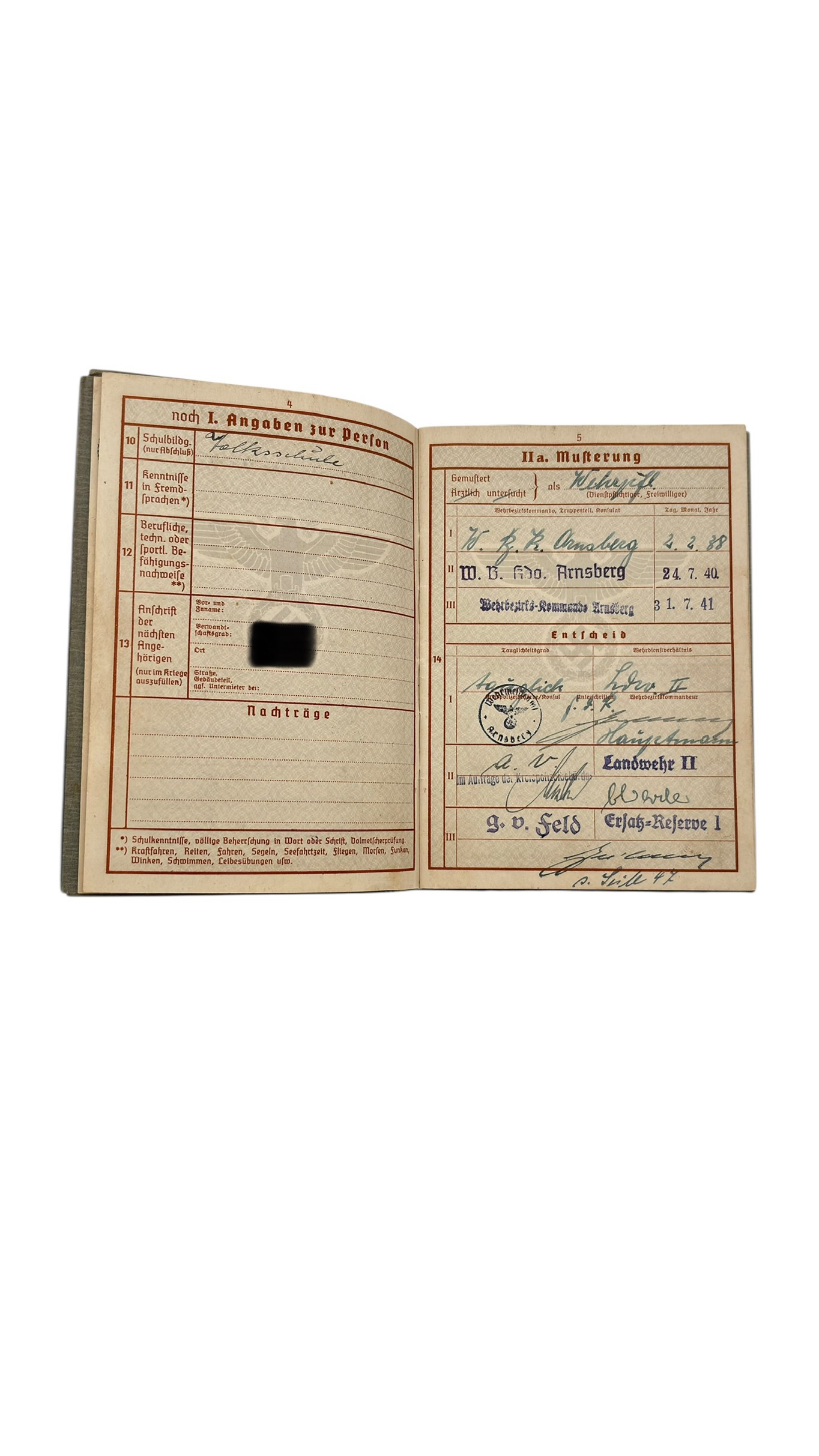 Enregistré sous la Wehrnummer Arnsberg 10/65/5, avec inscription officielle à Augsburg le 05.12.1939.