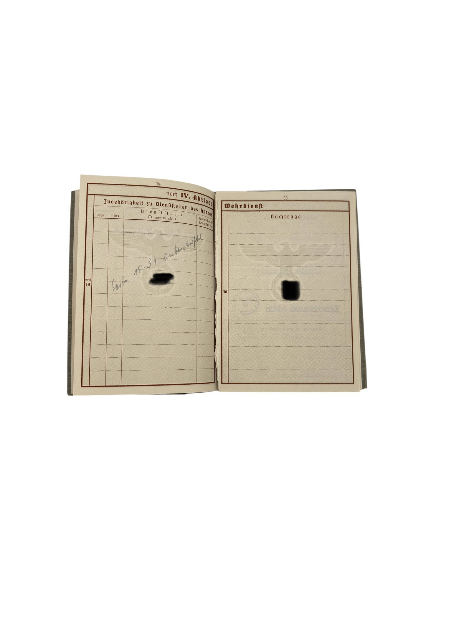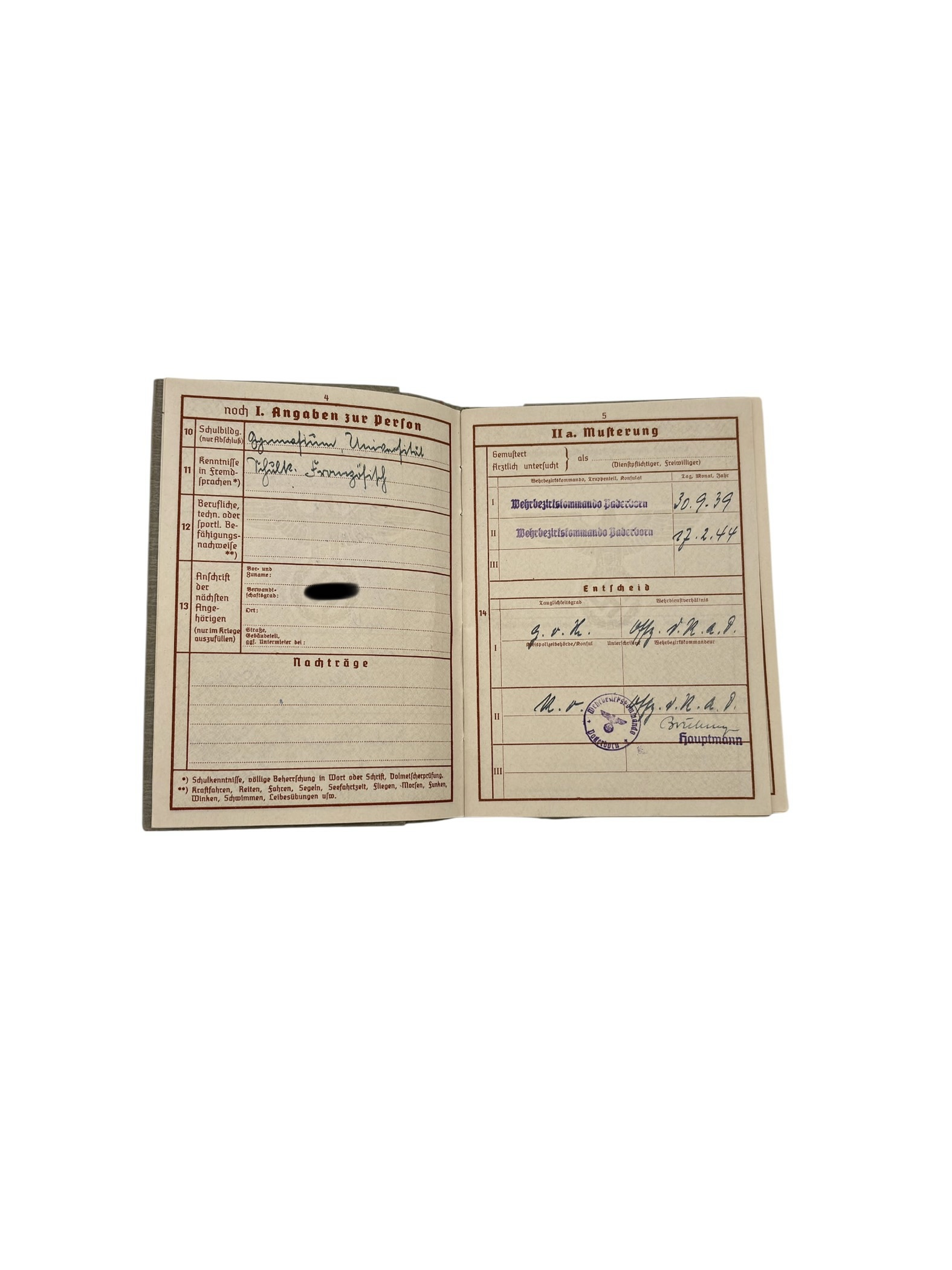 Il a été délivré par le Wehrbezirkskommando de Paderborn le 30 mai 1939, au début de la mobilisation précédant la Seconde Guerre mondiale.